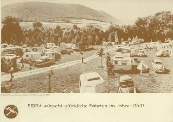 2 Seiten 21 x 15 cm Eriba wünscht glückliche Fahrten im Jahr 1960 Guter Zustand
