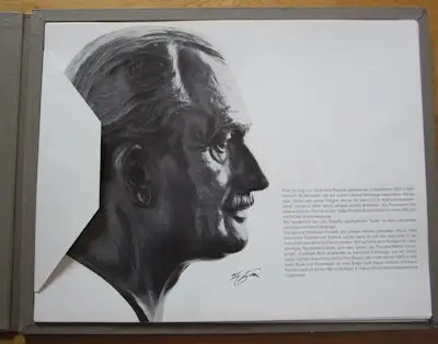 Format 44 x 34 cm Text Richard von Frankenberg 1 Blatt Einführung deutsch / englisch 1 Blatt Beschreibung deutsch / englisch 18 Blätter: Lohner 1900, Rennwagen 1900, Reisewagen 1905, Austro-Daimler Typ Prinz Heinrich, Elektro-Stadtcoupe 1914, Austro-Daimler 4,4 Liter 1921, Sascha-Rennwagen 1922, Daimler Rennwagen 1924, Mercedes-Benz SSK 7,1 Liter ca.1927, Steyr 5,3 Liter 1929, Auto-Union Rennwagen 1934/37, VW Käfer 1938/39, Cisitalia 1500 1946, Porsche 356, Porsche Spyder, Porsche Formel 1 1954/60, Porsche 356 C und Porsche 901 Mappe guter Zustand, einige Blätter weisen Reiszweck-Löcher auf!