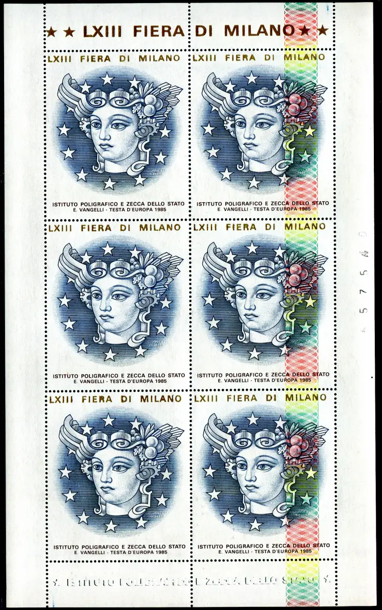 Vollgummi - Erinnerungsbogen zur LXIII Fiera di Milano 1985 - gedruckt vom Polygrafico di State in limitierter Auflage - ungewöhnlich - Nr. 38/WEB