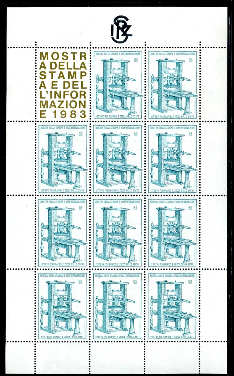 Erinnerungsbogen Druck- und Informationsausstellung 1983 Vollgummi - Erinnerungsbogen zur Presse- und Informationsausstellung 1983 - gedruckt von der Staatspolygraphie in limitierter Auflage - ungewöhnlich - Nr. 14/WEB