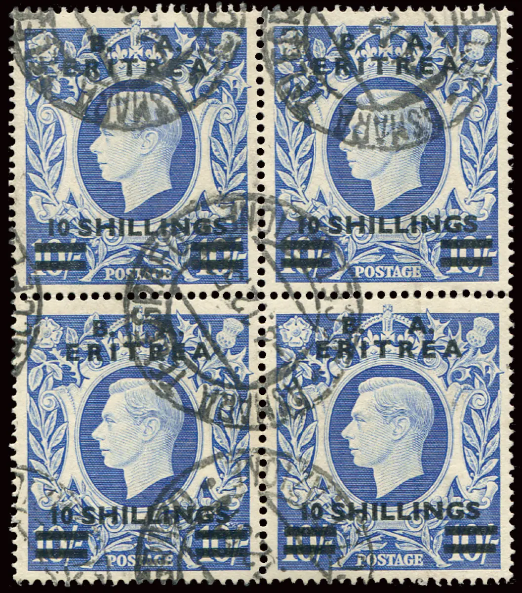 Eritrea Occ. Englisch - 10 Sh. viertel gebrauchte Sorte GEBRAUCHT - Eritrea Occ. Englisch - 10 Sh. Nr. 26 Viertel gebraucht, ein Exemplar mit größerem Abstand zwischen den beiden Aufdrucken (Nr. 26a) - Ungewöhnlich, für Fachkräfte - Kat. 400+ Cod. 973/15