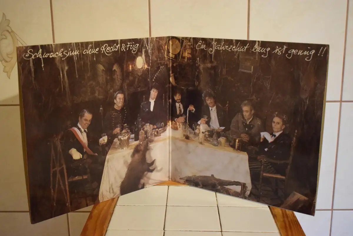 Cover mit leichten umlaufenden Gebrauchspuren insbesondere an den Ecken und im Bereich Einschub , Textbeiblatt dabei , LPs ohne nennenswerte Gebrauchspuren , spielen erstklassig .
