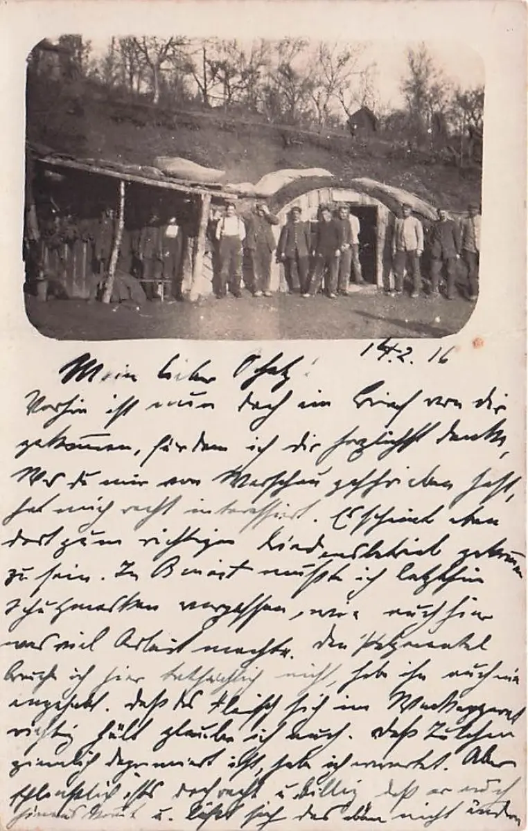 Das Bild zeigt einen handgeschriebenen Brief und ein Foto aus dem Ersten Weltkrieg