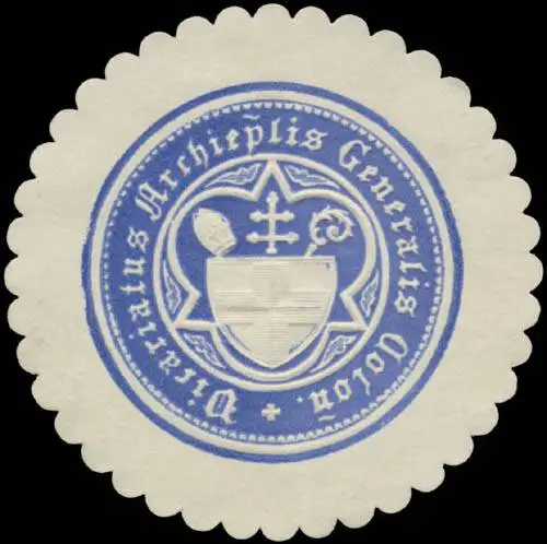 Vicariatus Archieplis Generalis Colon, Vikariat, Köln, Größe/Zustand: 5 , guter Zustand, Original Verschluss-Siegelmarke aus Papier welche früher von Behörden, Firmen etc. zum Versiegeln der Briefe benutzt wurden