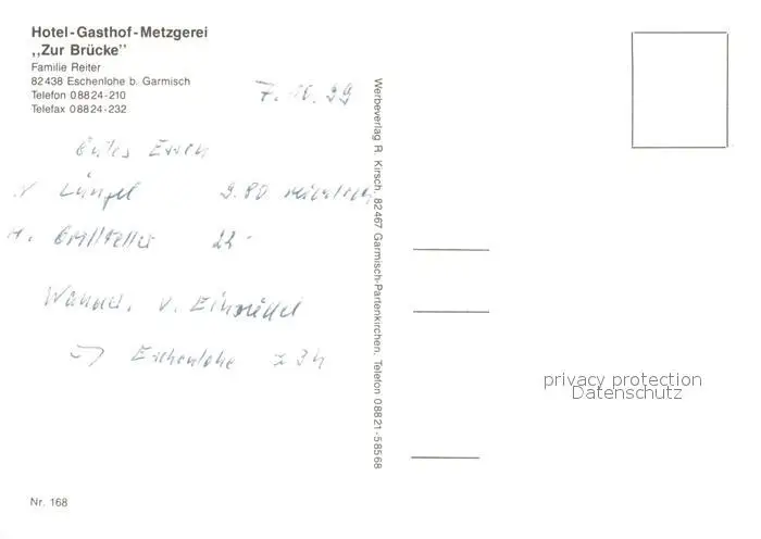 Eschenlohe Hotel Gasthof Metzgerei Zur Bruecke Eschenlohe postalisch nicht gelaufen 1999 Erhaltung siehe scans [WerneD78] WernPID7