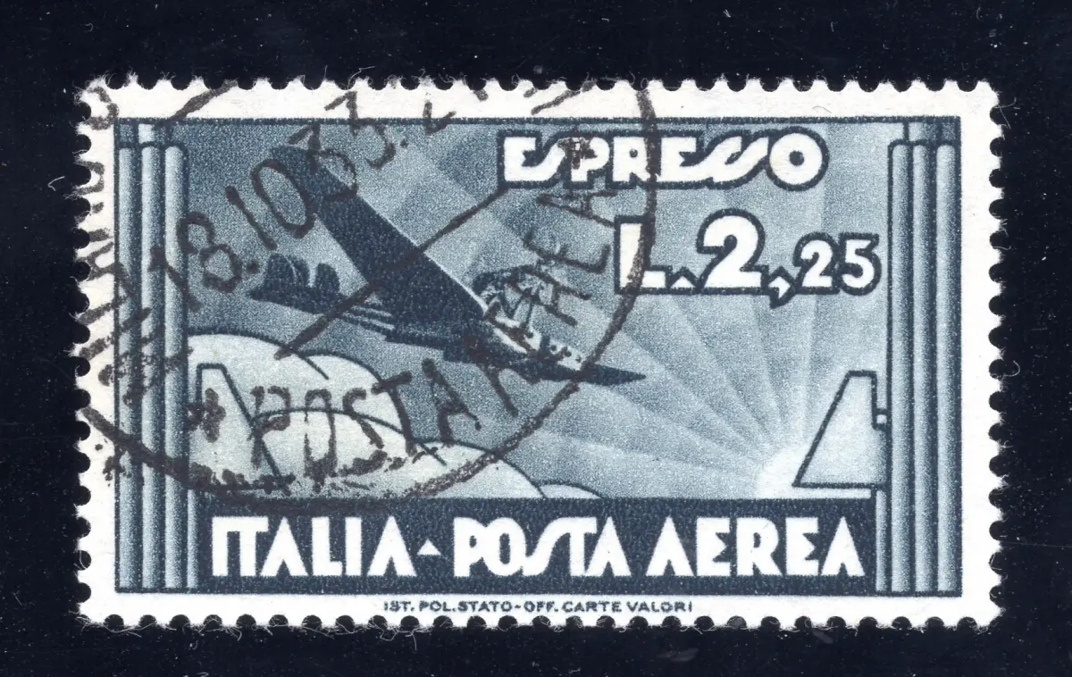 Espresso Aereo Lire 2,25 Nr. 44 gebraucht von ausgezeichneter Qualität und Zentrierung, Stornierung signiert G. Biondi - Nicht garantiert Cod. 1224 / Outlet