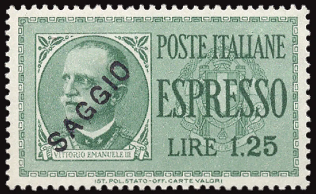 MNH - Vollgummi - Espresso Lire 1,25 Vitt. Emanuel III Nr. 15 mit Aufdruck SAGGIO in schwarz - Nicht katalogisiert Cod. 190/17