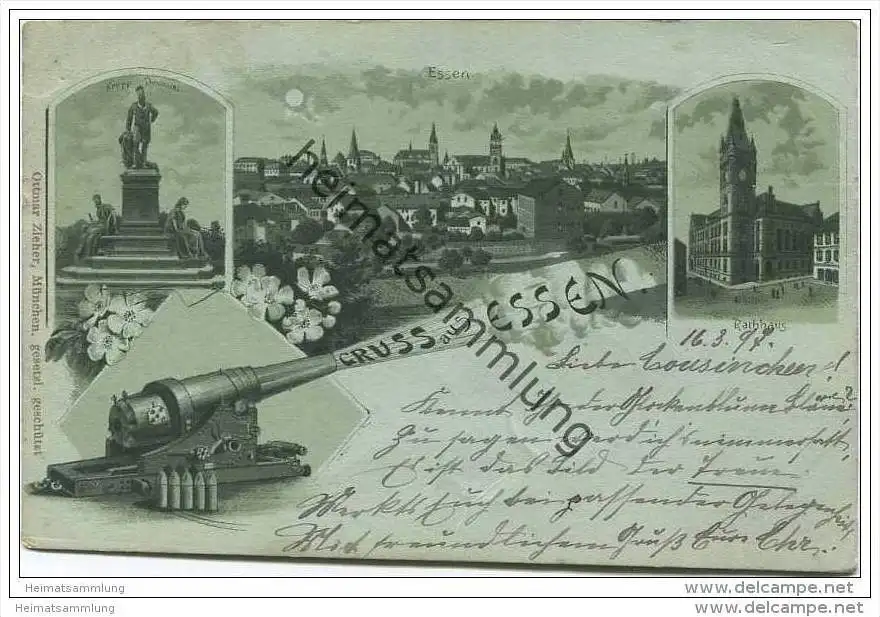 Essen - Ruhr - Rathaus - Gesamtansicht - Nachporto - Verlag Ottmar Zieher München - Gebrauchsspuren Eckknick oben links (E11222) gel. 1898