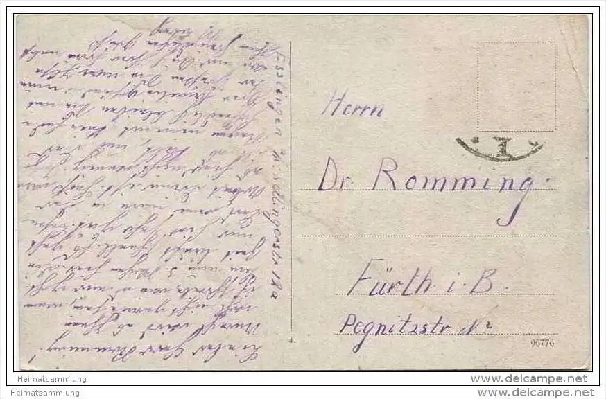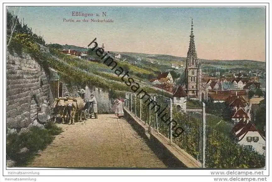 Esslingen a. N. - Partie an der Neckarhalde - Briefmarke entfernt - Gebrauchsspuren - Eckknick links oben (E7295) gel.