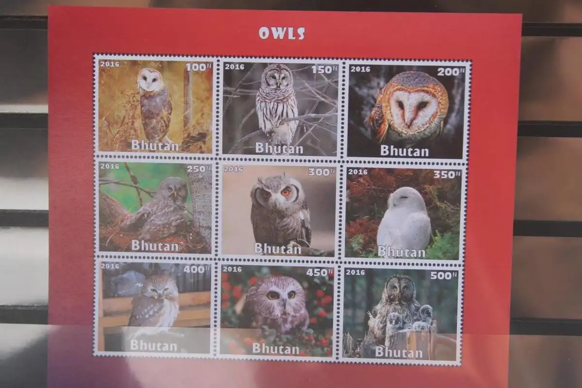 Eulen, Bhutan, Blockausgabe, ungebraucht