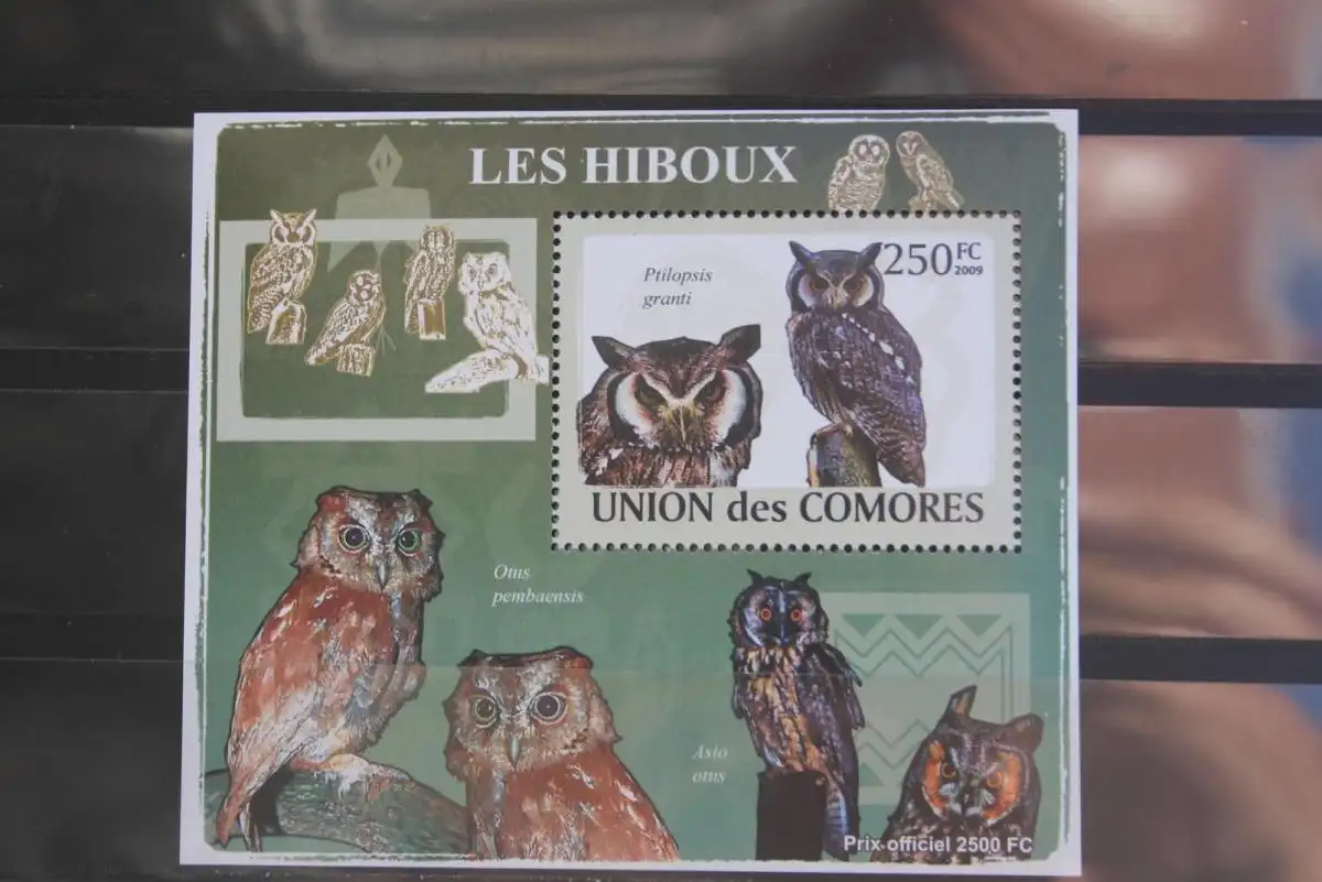 Eulen, Comoren, Blockausgabe, gezähnt; ungebraucht