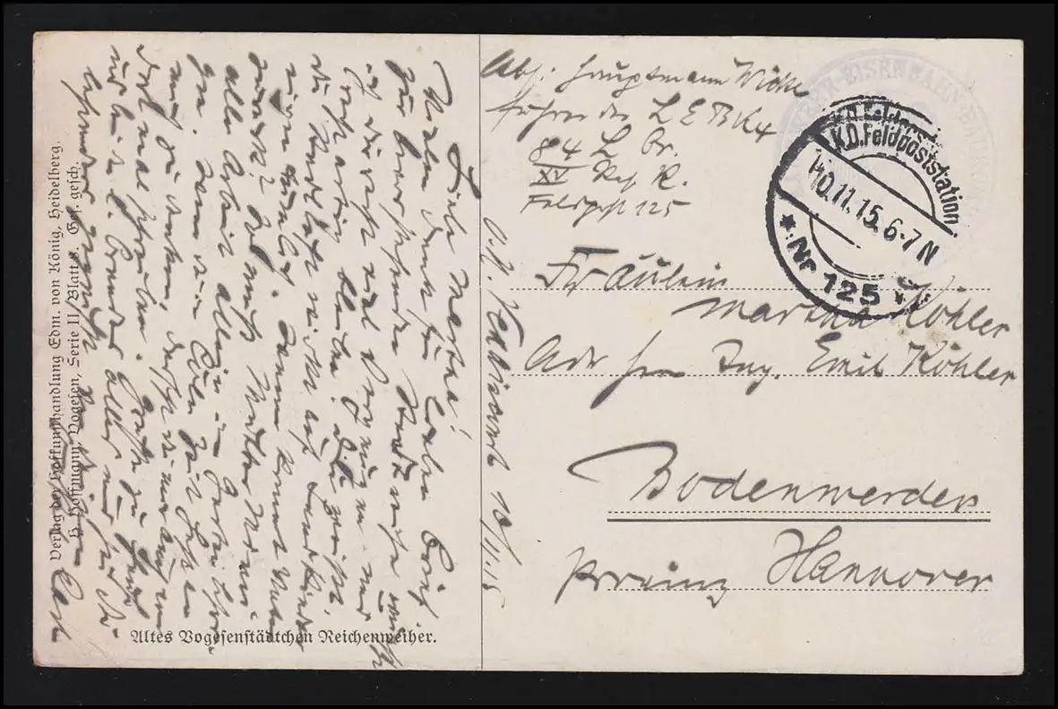 Europa VOGESEN/ Elsass REICHENWEiER Riquewihr H. Hoffmann, Feldpost 10.11.15