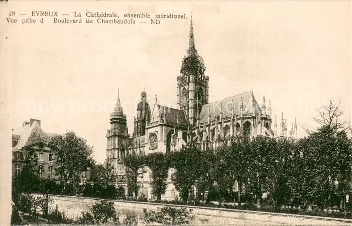 Evreux La Cathedrale ensemble meridional Vue prise du Boulevard de Chambaudoin Evreux postalisch nicht gelaufen 1921-1965 Erhaltung siehe scans [WerneD78] WernPID7