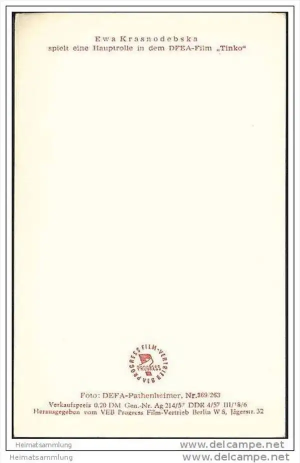 Ewa Krasnodebska - AK ohne rückseitige Einteilung - Verlag VEB Progress Film-Vertrieb Berlin 1957 (G21862) *