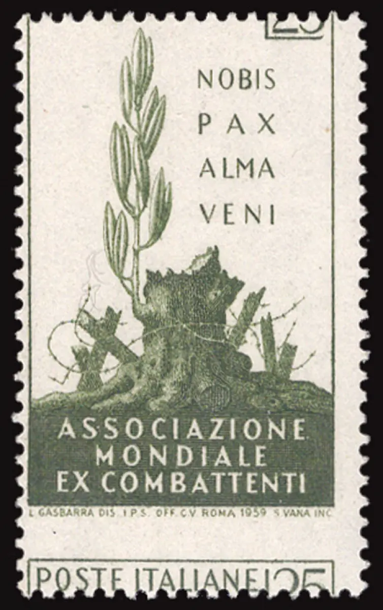 MNH - Vollgummi - Ex Combattenti Lire 25 Nr. 858aa horizontale Verzahnung stark verschoben, so dass der Schriftzug Poste Italiane unten statt oben zu lesen ist - Selten - Kat. euro 1.250 Cod. 799/17