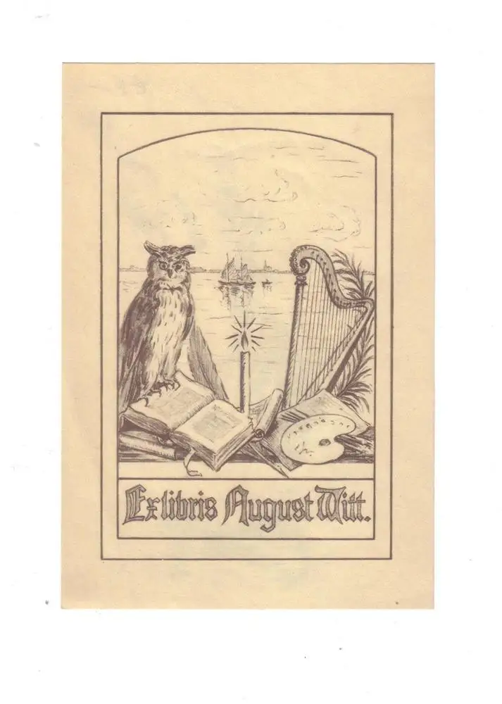 Ex Libris August Witt. Einfarbiger Offsetdruck.