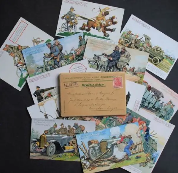 Excelsior Gummiwerke 1914 Postkarten-Mappe mit 16 Originalpostkarten (3028)
