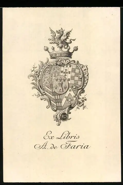 Exlibris A. de Faria, Wappen mit Krone & Drache