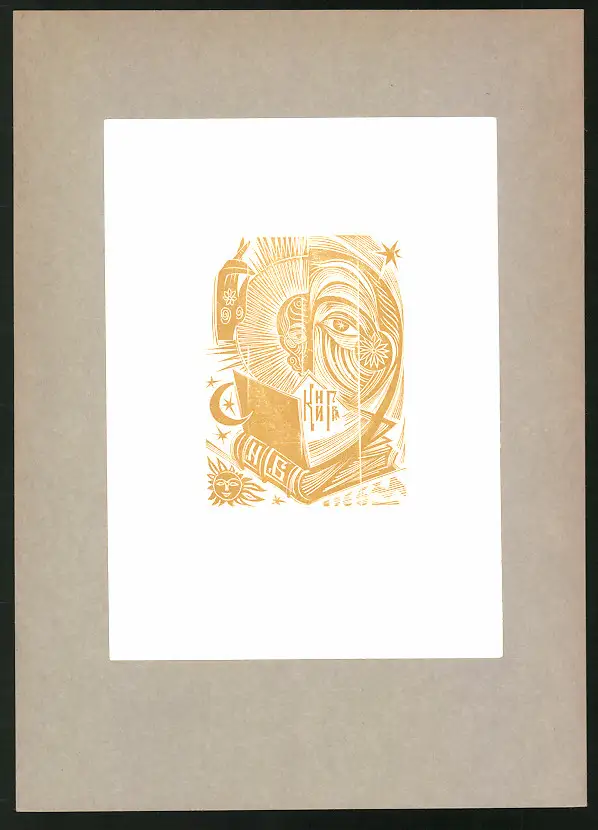 Maße Exlibris: 13,5cm x 10cm, auf Karton motniert, guter Zustand