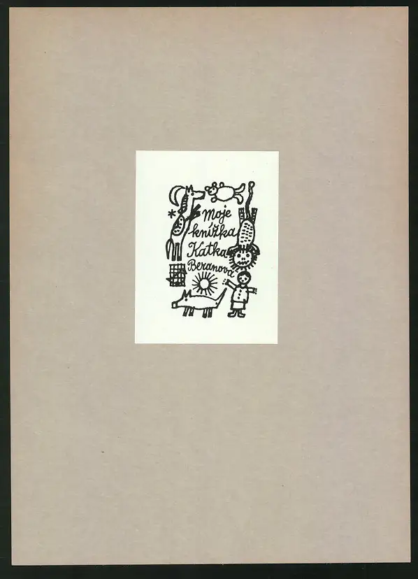 Exlibris Alex Bernan L., Pferd, Schwein, kleines Kind