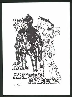 Exlibris Anders Hansen, Ritterrüstung mit Soldat und Gewehr