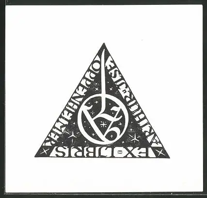 Maße Exlibris: 10cm x 9,5cm, rückseitig Klebe- und Papierreste, rückseitig Oberflächenschaden, sonst guter Zustand