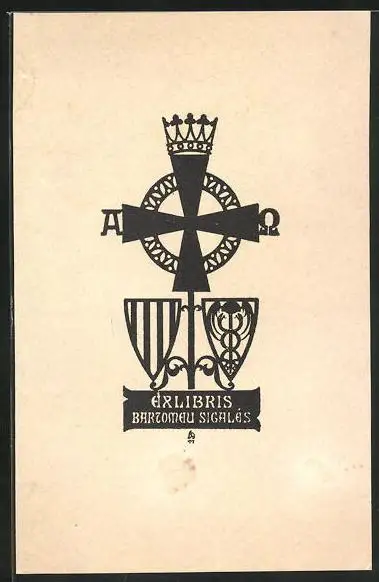 Exlibris Bartolomeu Sigales, Kreuz und Wappen