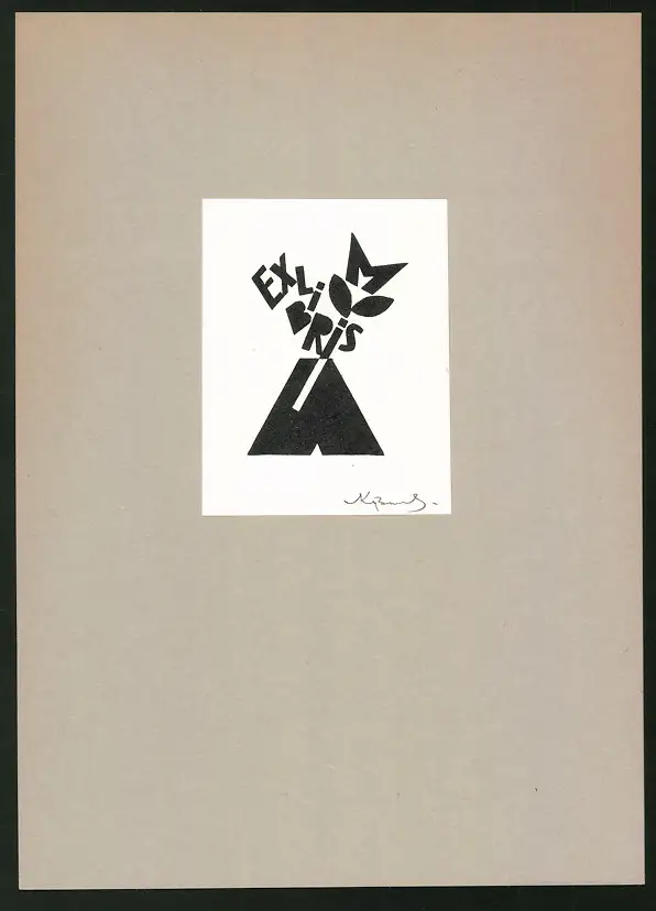 Maße Exlibris: 7cm x 5,5cm, auf Karton montiert, guter Zustand