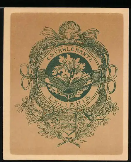 Exlibris C. J. Fahlc Rantz, Wappen mit Eichenlaub