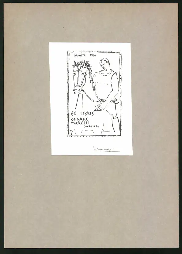 Exlibris Cesare Marelli, Jockey sitzt auf seinem Pferd