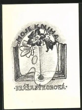 Exlibris Draza Sykorova, Buch und Blumen