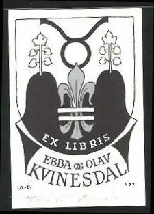 Exlibris Ebba & Olav Kvinesdal, Wappen mit Lilien