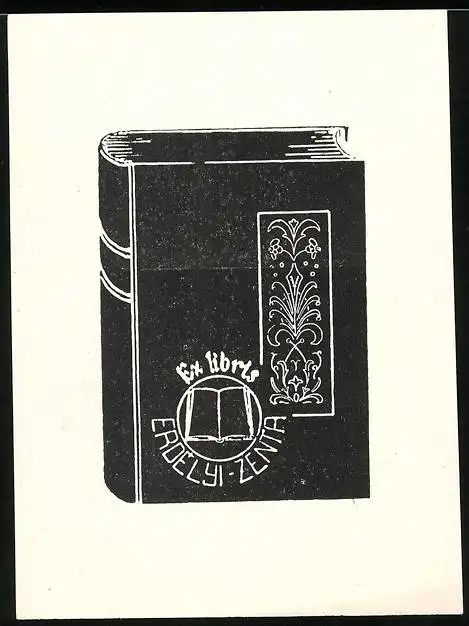 Exlibris Erdelyi Zenta, Buch mit Ornament auf dem Einband