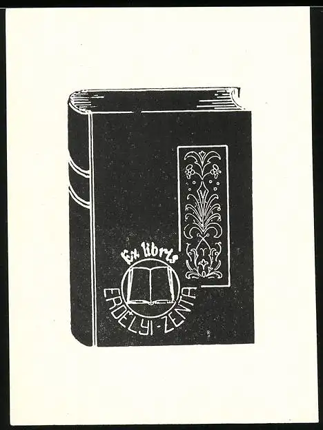 Exlibris Erdelyi Zenta, Buch mit Ornament auf dem Einband