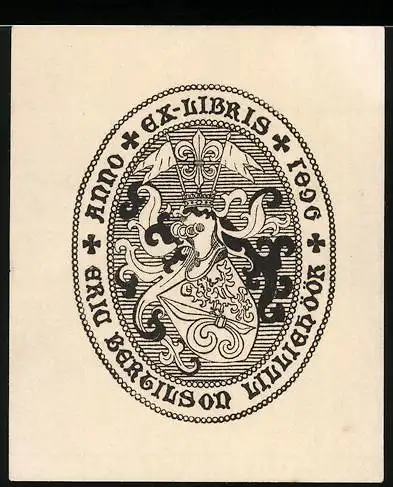 Exlibris Eric Bertilson, Wappen mit Ritterhelm & Ornamenten