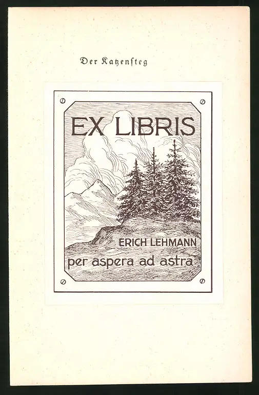 Exlibris Erich Lehmann, Berge mit Tannenbäumen