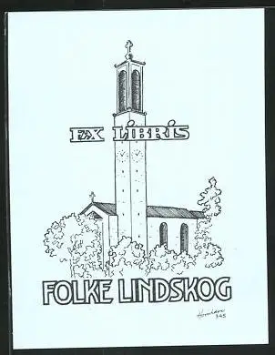 Exlibris Folke Lindskog, Kirche mit Glockenturm