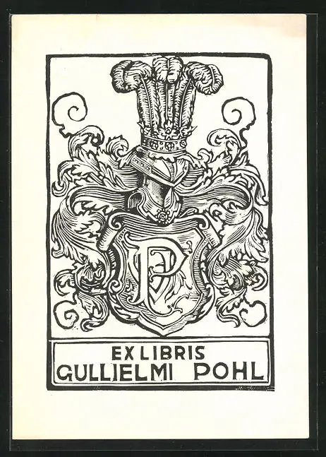 Exlibris Gullielmi Pohl, Ritterhelm mit Wappenschild