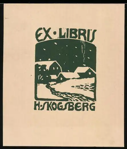 Exlibris H. Skogsberg, Ortsansicht im Winter