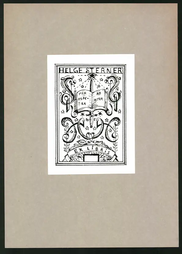 Exlibris Helge Sterner, offenes Buch mit Initialen