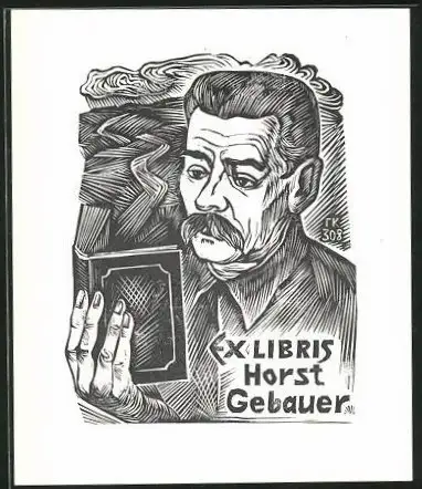 Exlibris Horst Gebauer, Gelehrter Mann am Lesen