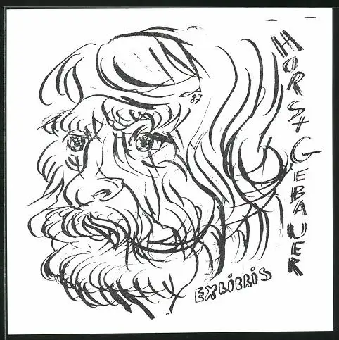 Exlibris Horst Gebauer, Portrait Herr mit Vollbart