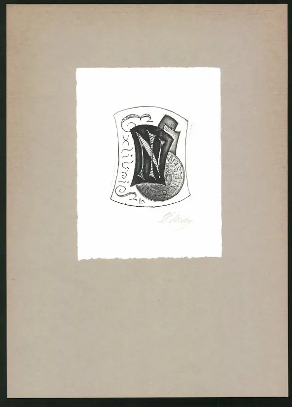 Maße Exlibris: 9,5cm x 7,5cm, auf Karton montiert, guter Zustand