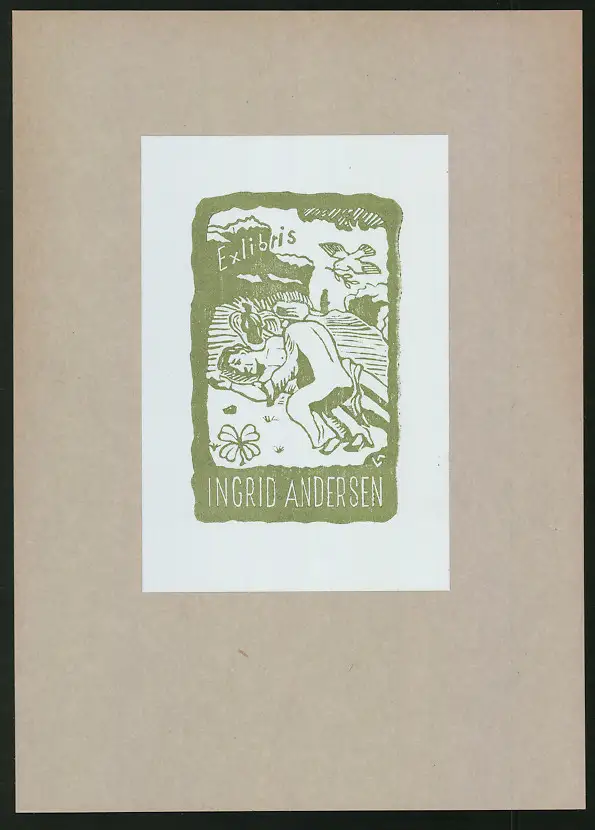 Maße Exlibris: 11,5cm x 7,5cm, auf Karton montiert, guter Zustand