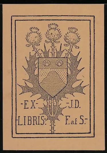 Exlibris J. D. F. af S.-, Wappen mit blühenden Disteln