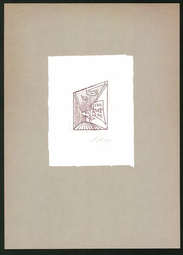 Maße Exlibris: 9cm x 7cm, auf Karton montiert, guter Zustand