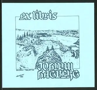 Exlibris Johnny Hagberg, Landschaft mit Wasserfall