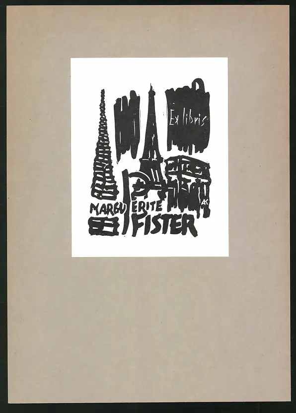 Exlibris Margu Perite Pfister, Eiffelturm & Triumphbogen zu Paris