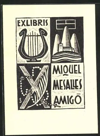 Exlibris Miquel Mesalles Amigo, Leier, Berggruppe, Rosenkranz