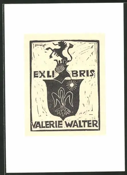 Exlibris Valerie Walter, Wappen mit Ritterhelm und Blume
